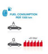Tento diagram udáva mieru spotreby paliva, umožňuje teda zákazníkom porovnať rozdiely medzi výkonnosťou jednotlivých pneumatík. Trieda spotreby paliva je daná valivým odporom pneumatík.