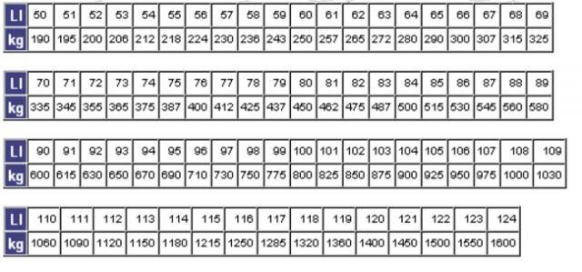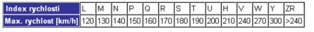 Údaje na pneumatike LI (load index – záťažový index) a SI (speed index – rýchlostný index)